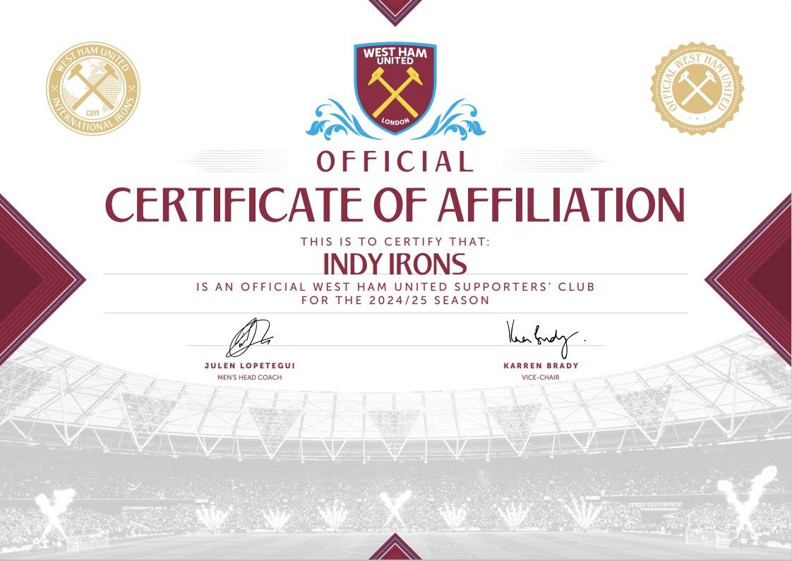Indy Irons is the official supporters club for West Ham United, embracing fans locally and abroad.